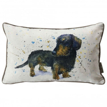 The design for this adorable Dachshund cushion was hand painted in the UK excusively for our supplier.