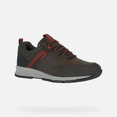 Geox men's waterproof breathable trainers with an outdoor vibe. With an upper crafted from a waxed leather-effect material and suede in a dark-brown palette. Fitted with elasticated lacing that ensures a snug adaptable fit, it provides a combination of contemporary stylishness, functionality and a sensation of well-being.