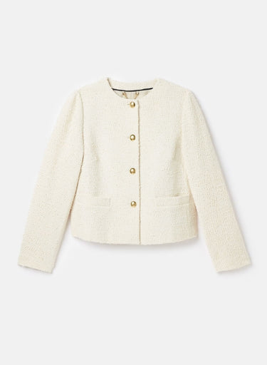 Crafted from a textured boucle fabric, this Hampstead Boucle Jacket from Joules has a button-down front, as well as matching waterfall buttoned cuffs for a polished look and feel. There are two functional pockets to the front. Cut in a boxy yet flattering shape, we think it looks best worn over a lightweight T-Shirt and classic jeans or shorts.