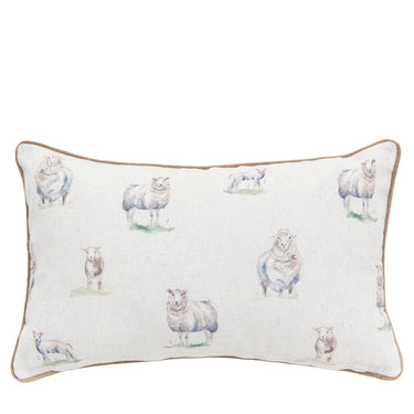 Charmingly rustic, this cute sheep cushion features a classic, hand-painted countryside scene. Complemented by a piped light brown trim, this will make a stylish statement in any home.