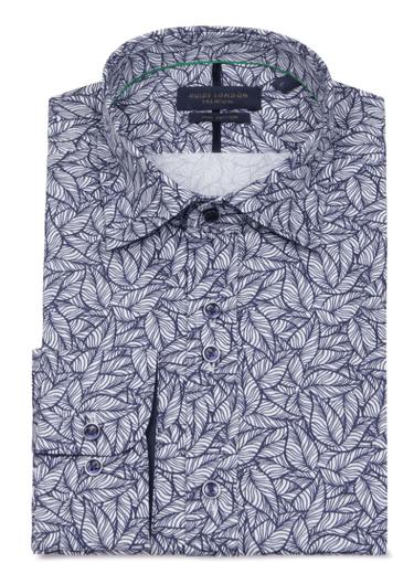 Guide London Sophisticated Navy Leaf Print Men's Long Sleeve Cotton Shirt