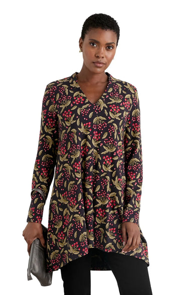 A gorgeous, soft swing tunic, crafted from drape organic cotton jersey. It boasts a V-neck, with an A-line shape.