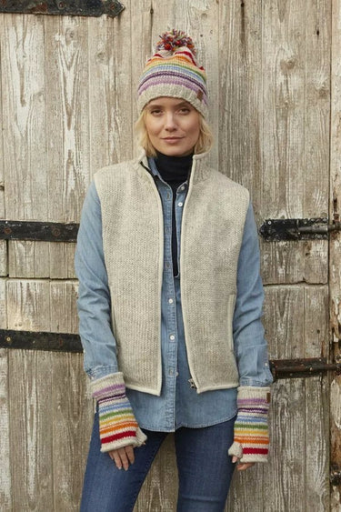Pachamama women's hand knitted wool sleeveless jacket / gilet with zip. Simple and classic design. Fair trade and handmade in Nepal.