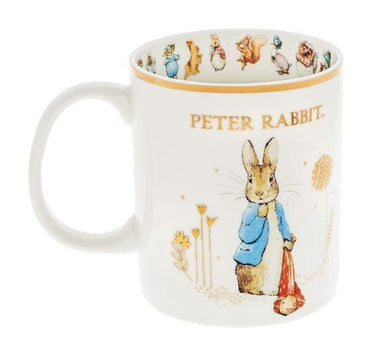 Following the launch of our new and exciting collection, the annual exclusive mug of the year. Peter Rabbit delights us with his presence for 2021. This iconic pose has been applied to this bone china mug and is rimmed with gold leaf. On the inside rim of the mug are all the different characters from the Beatrix Potter stories. In this circle of literary characters, Peter Rabbit is presented in gold leaf, and as more characters star on each Mug of the Year, their depictions on the inside of the mug will also change to gold leaf, denoting that they are the mug of the year.