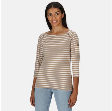 Regatta Polina Printed Long Sleeved T-Shirt Nutmeg Cream Stripe