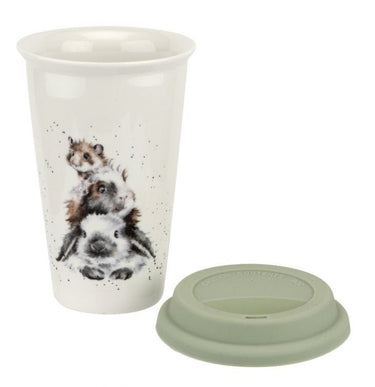 Stay hydrated on the go with this adorable travel mug. Three fluffy animals including the Wrendale Designs guinea pig, mouse and rabbit in Hannah Dales's delightful watercolour style are featured on this ceramic travel mug with lid.