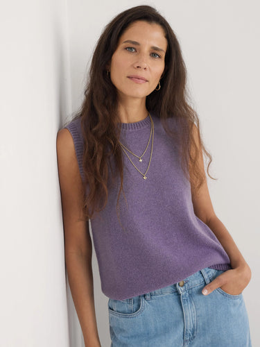 Wear it with jeans, or over a dress. This versatile knitted vest can be worn with all sorts of outfits and it will always look great! Made from a merino blend.