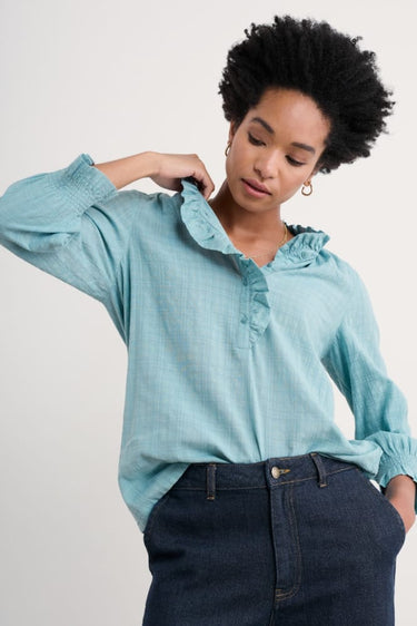 This lightweight summer top is made from a blend of organic cotton and viscose and has elasticated cuffs.