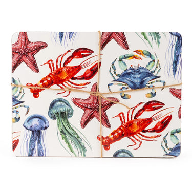 This set of four placemats brings the vibrancy and diversity of ocean life to your dining table. These feature sea creatures including starfish, lobsters, crabs, and jellyfish. Perfect to bring a pop of colour to any dining table.