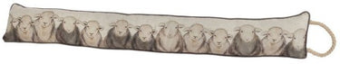 Sheep, Sheep, Sheep everywhere you look are looking back at you in a row on this linen feel draught excluder - an assortment of black and grey sheep printed on a linen feel fabric – handy rope loop at the end to hang up when not in use. Keep out the draughts under your doors or window sills