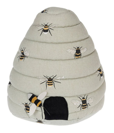 Beehive shaped doorstop cover in Sophie Allport Bees fabric.
