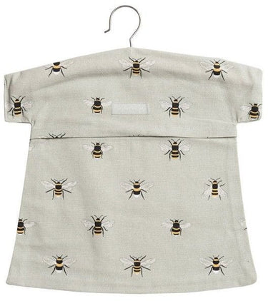 This pretty Bee peg bag will keep all your pegs in one place while you're putting out the washing. Designed with a wooden hanger for easy storage and to hang it up while you're using it.