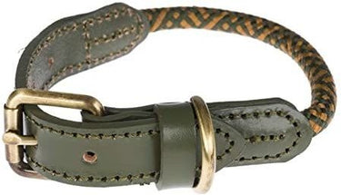 This lovely forest green rope dog collar with antique brass buckle fastening and embossed leather details is the perfect accessory for your four legged friend. Available in a range of sizes suitable for a variety of breeds with matching lead available too. Perfect for everyday wear, this stylish and comfortable pet collar is perfect for strolls in the countryside and walks around the block.