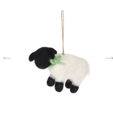 A wonderful springtime home decoration, perfect for Easter, this playful felt sheep decoration is ideal for hanging in your home, wrapping around napkins, decorating your dinner table or even to decorate a house plant or even hang her on your Christmas Tree!