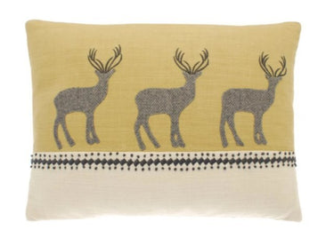 This beautiful Stag Rectangular cushion featuring three deer silhouettes is hand decorated with delicate embroidery and applique detailing. This is a true year round home accessory which can be styled with warmer tones for a cosy Christmas feel or pair with fresh bright tones for a Springtime look.