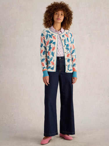 White Stuff Lulu Printed Long Sleeve Cardi in Natural Print