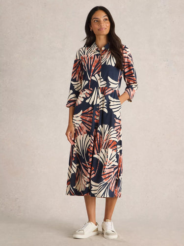 White Stuff Rua Midi Jersey 3/4 Sleeve Dress in Navy