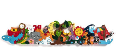 The Sun and Moon Alphabet Jigsaw is a fantastic learning tool for all ages. Each item in the puzzle begins with a letter of the alphabet, not only providing a means to learn the alphabet but to associate the letters too.