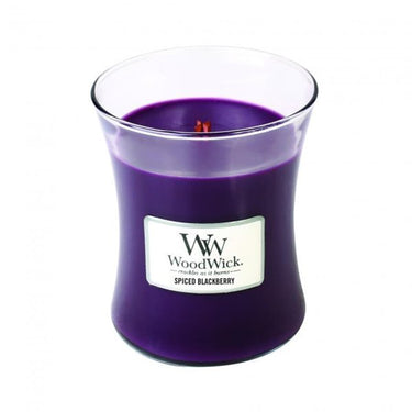 The WoodWick Hourglass Candle in Spiced Blackberry. Surround your senses with enticing notes of delightfully rich blackberry, spicy cinnamon and flaky, vanilla-drizzled danish, whilst also enjoying the crackle of the natural wooden wick.
