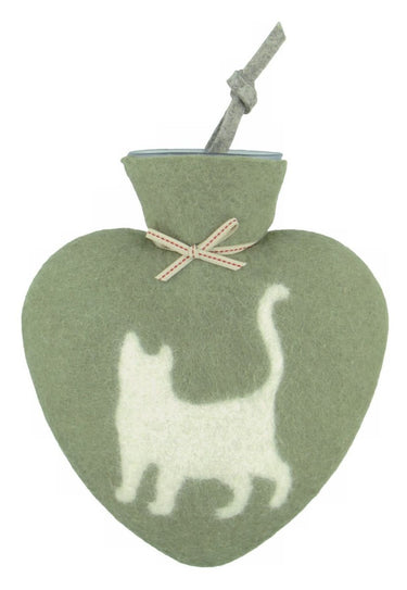 This luxury hot water bottle is made out of felted merino wool making it soft and warm. This heart-shaped hot water bottle has a heart design felted into it, making it a lovely gift for any cat lover.