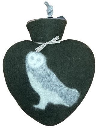 Merino Wool Heart-Shaped Owl Hot Water Bottle