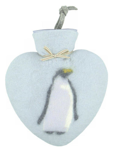Merino Wool Heart-Shaped Penguin Hot Water Bottle